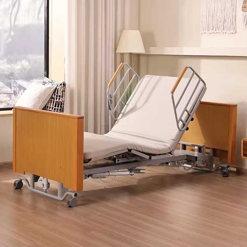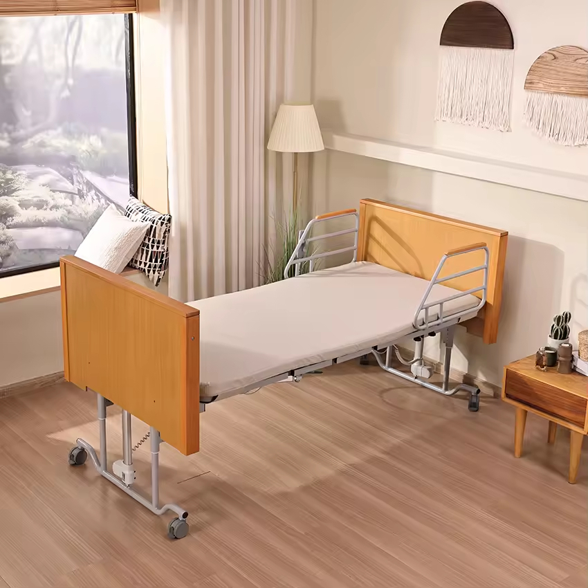 For users seeking a more home-like feel, the bed offers a wooden construction variant (e.g., wooden headboard, frame accents). The wood material adds warmth and blends seamlessly with residential interiors while maintaining the bed’s medical-grade durability and functionality.