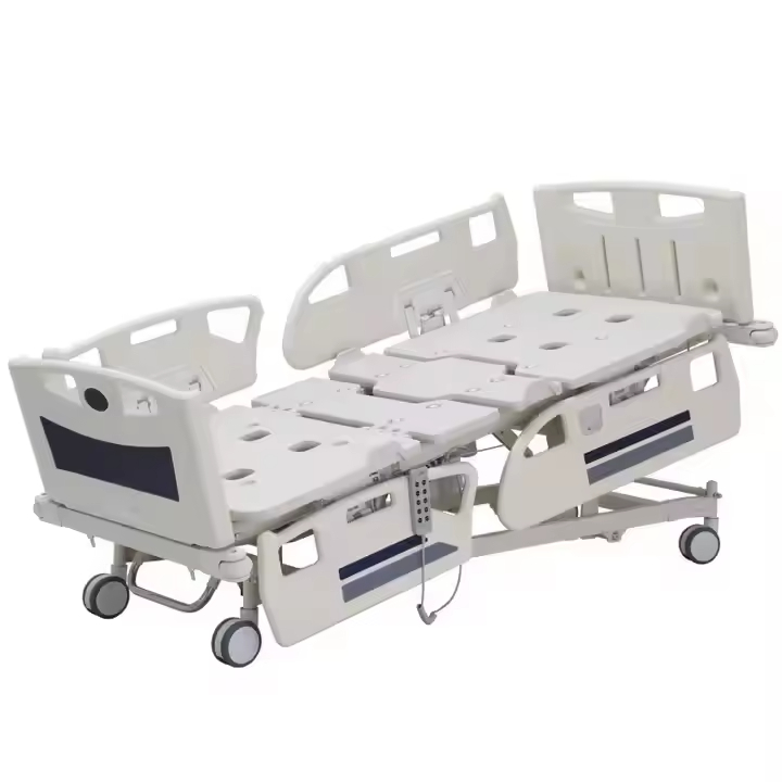 This five-function electric hospital bed is designed to support patient care in hospitals, nursing homes, assisted living facilities, and outpatient clinics. It combines intuitive operation with robust construction, prioritizing patient comfort and safety while facilitating efficient care for healthcare staff.