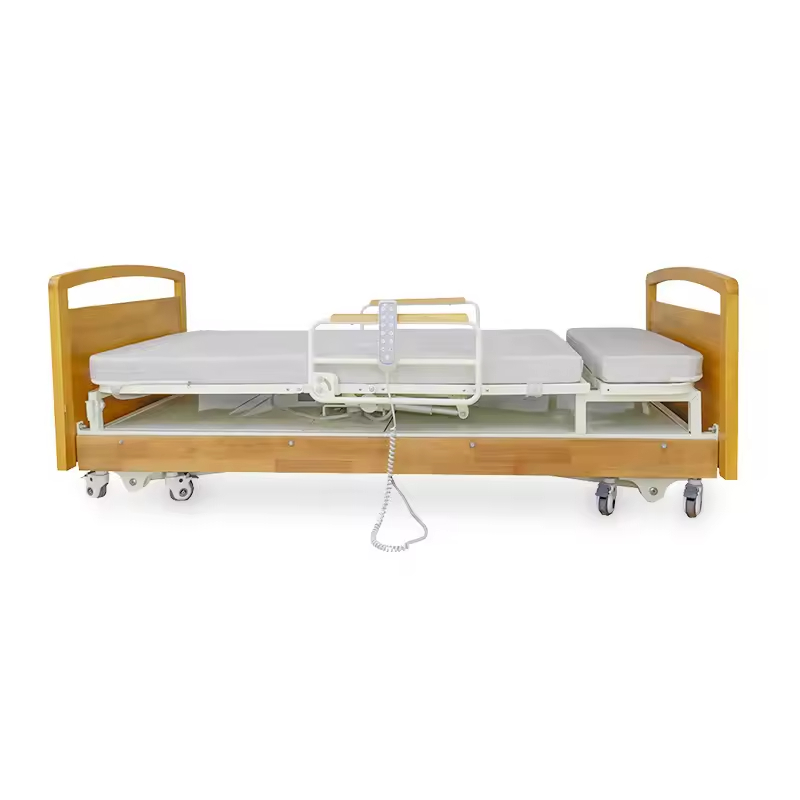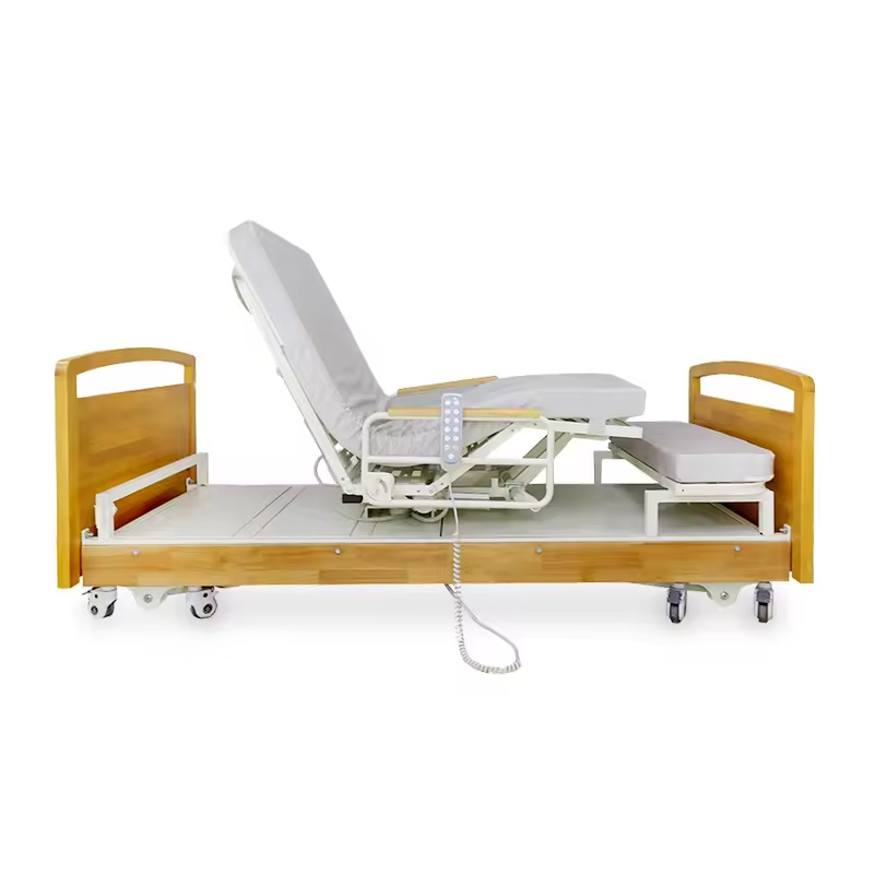 A home- and care-focused nursing bed designed to address diverse mobility and comfort needs of patients, the elderly, or individuals in rehabilitation—integrating 6 core adjustable functions (including rotation, forward/backward tilting) with a balance of durability and home-friendly design. It prioritizes reducing caregiver strain (e.g., safe transfers, easy positioning) and enhancing user comfort (e.g., pressure relief, independent posture adjustment), making it suitable for home care, small clinics, or assisted living settings.