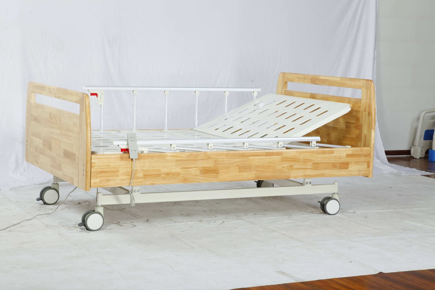 This electric nursing bed balances functionality and comfort, making it well-suited for nursing home settings. The electric adjustments simplify daily care tasks, while its sturdy build and generous weight capacity ensure durability in high-use environments. The wooden accents help create a more welcoming, residential feel—an important detail for promoting well-being among long-term residents